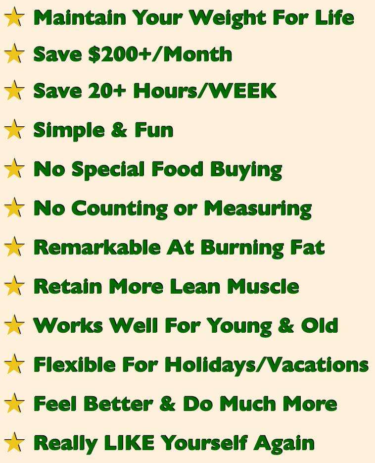 Lose inches and pounds for life, at any age - NEVER DIET AGAIN - Guaranteed! Save 10+ times the price of the book EVERY month!